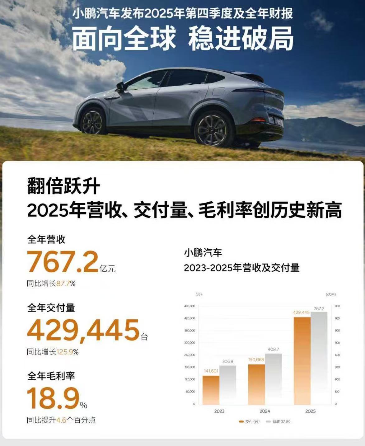 零跑B、C、A、D四大平台全面发力,B平台已推出三款全新车型,为2026年销量增长奠定了坚实基础。在初次实现盈利后,零跑需要在保持界限增速的同期,进一步正经利润水平。小鹏正在经验从“技能率先”到“技能变现”的关节阶段。天然一季度委用策画为6.1万—6.6万辆,指标相对保守,但盈利可能性较大。参照客岁四季度毛利率的权臣擢升,阐明了其技能驱动型盈利旅途的灵验性。