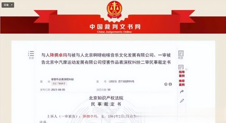 法院条件降央卓玛与接洽主理方,连带补偿刀郎版权方经济耗损及维权用度7.5万。
